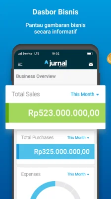 The Jurnal Mobile App provides features to monitor business summaries from sales, purchases, expenses, income statements and simple invoicing process with a simple interface, anywhere, at any time.