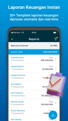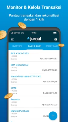 Displays real-time cash position & its amount on multiple accounts (AP, AR, Bank, Cashier Credit Card). It is connected to various banks (BCA, BNI, Mandiri, etc.) and reconciliation of transactions is processed automatically in the application. Payment transfers can also be done directly from the Jurnal App and your account will be updated automatically.